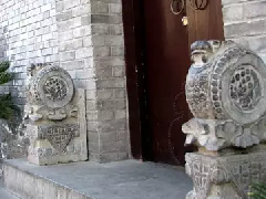 圓形即抱鼓形, 相傳,在古代, 打仗勝利歸來的將軍, 為顯耀其赫赫戰功, 把戰鼓置于門前, 后來逐漸衍變為抱鼓石。 抱鼓···